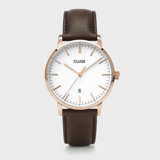 CLUSE Aravis Leather Rose Gold White/Dark Brown