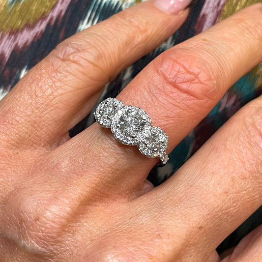 Platinum 1.14ct Diamond Trilogy Halo Ring | Diamond Shoulders