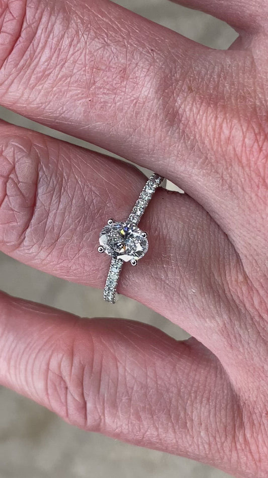 Platinum 0.95ct F SI1 GIA Cert Oval Diamond Solitaire Ring | Diamond Shoulders