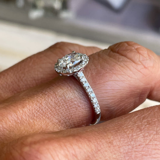 Platinum 1.56ct Oval Diamond Halo Solitaire Ring | Certificated