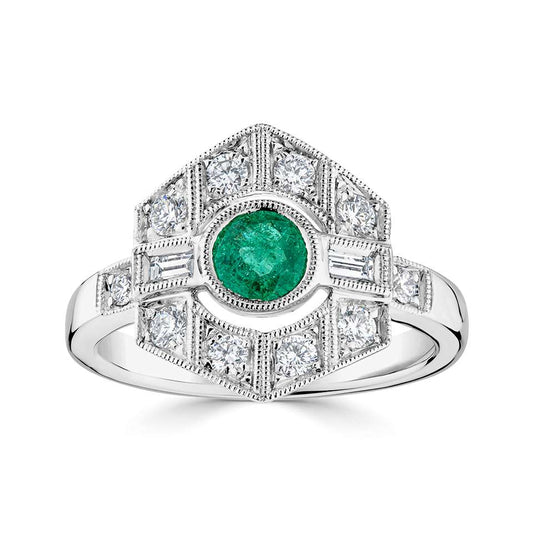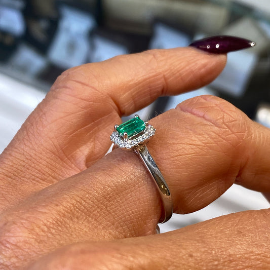 Platinum Emerald & Diamond Engagement Ring | 0.73ct + 0.24ct