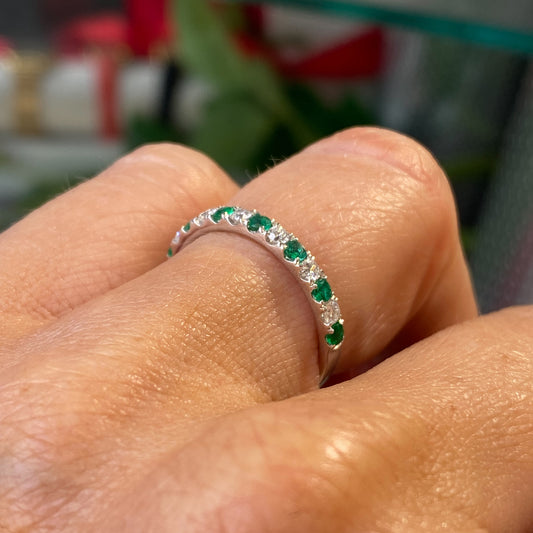 Platinum Emerald & Diamond Trilogy Garland Ring | Diamond Shoulders