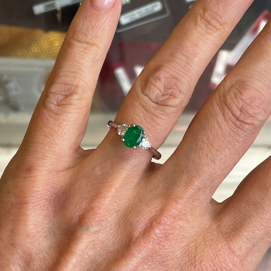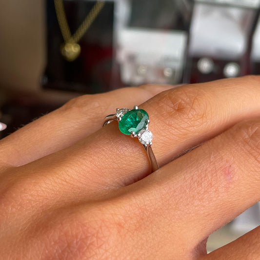 Platinum Emerald & Diamond Engagement Ring | 0.70ct + 0.35ct