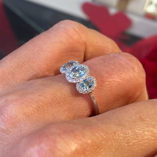 Platinum Oval Aquamarine & Diamond Garland Engagement Ring