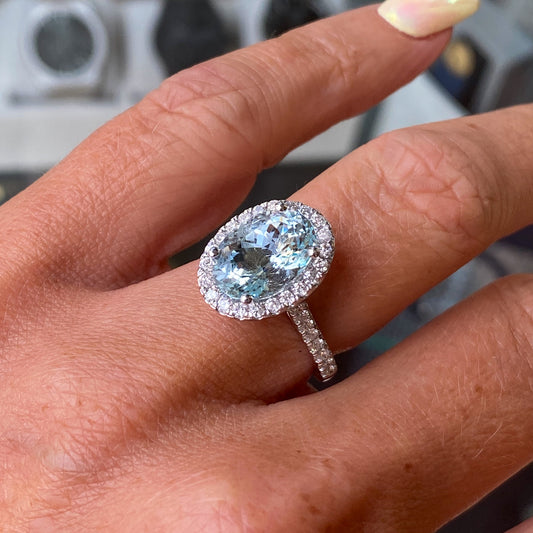 Platinum Oval Aquamarine & Diamond Ring