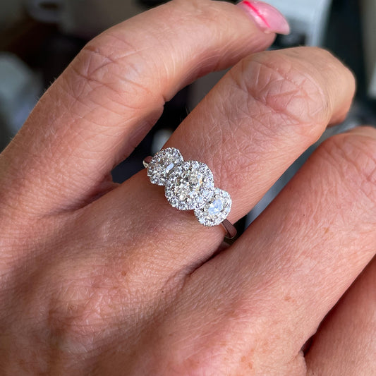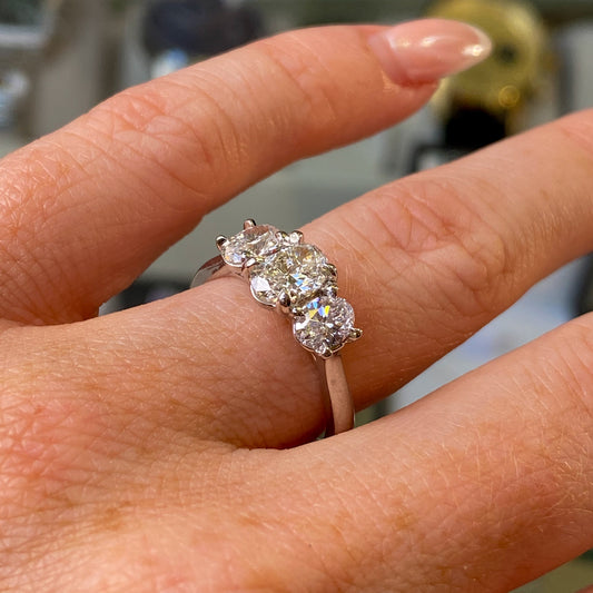 Platinum Oval Trilogy Diamond Engagement Ring | Certified