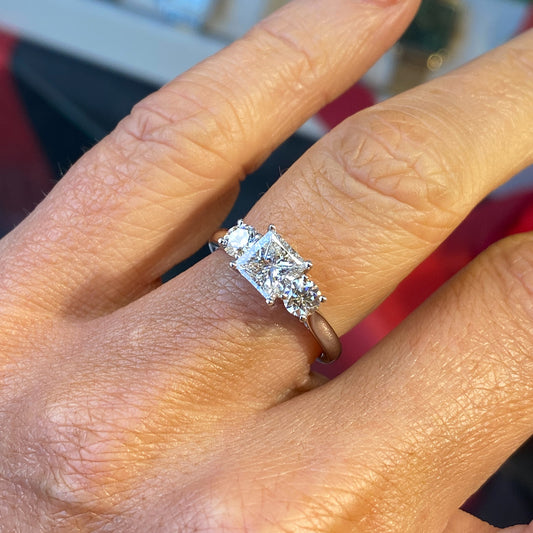 Platinum Princess Trilogy Diamond Engagement Ring | 1.55ct Certificated