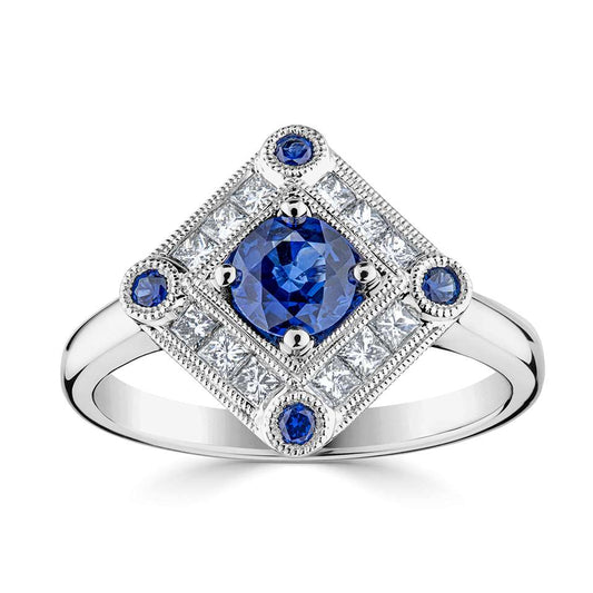 Platinum Sapphire & Diamond Diana Cluster Ring