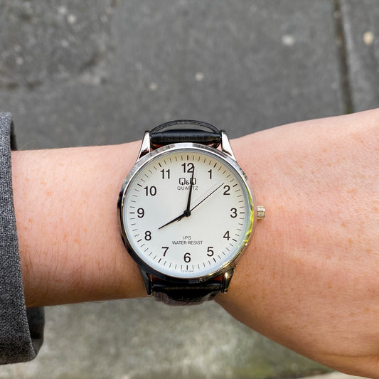 Sold outQ&Q Gents Rose Gold Leather Watch