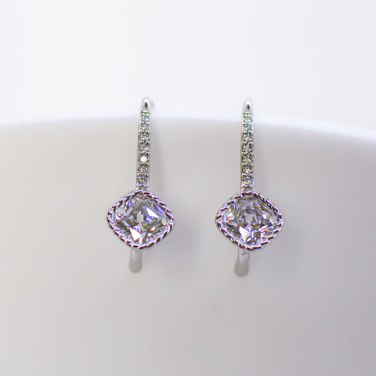 Silver Cushion CZ Twist Set CZ Drop Earrings