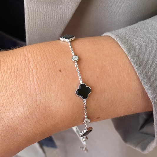 Sold outSilver CZ Bracelet | Onyx Quatrefoil