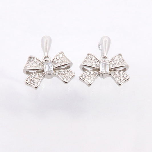 Silver CZ Bow Stud Earrings