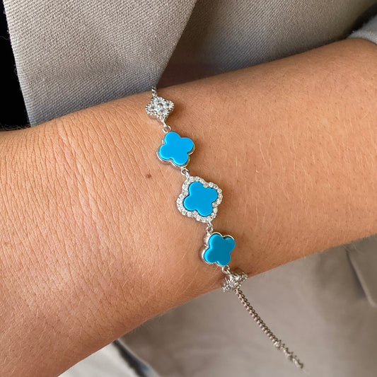Silver CZ Bracelet | Turquoise Quatrefoil