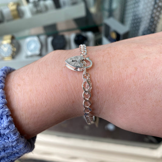 Silver Double Curb Link Charm Bracelet - Medium Weight