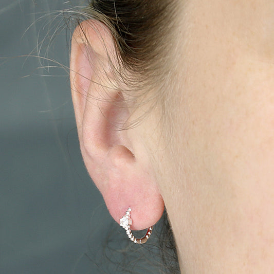 Silver Fine CZ Set Beaded Huggie Hoop Earrings