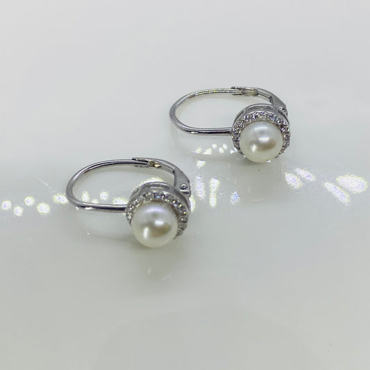 Silver Freshwater Pearl & CZ Halo Drop Earrings