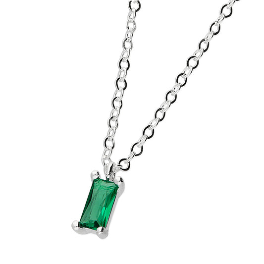 Silver Green CZ Baguette Huggie Hoop Earrings