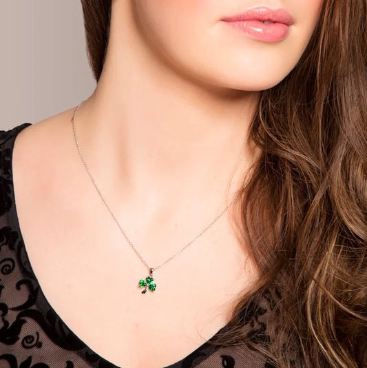 Silver Green CZ Claddagh Celtic Cross Necklace | Small