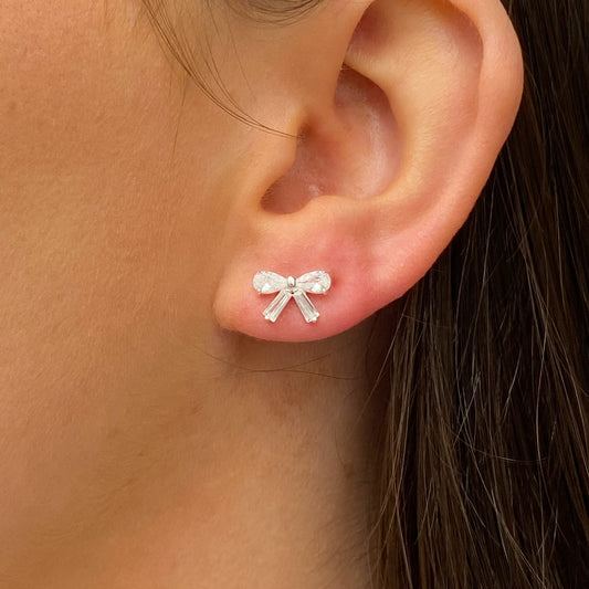 Sold outSilver Mixed CZ Bow Stud Earrings