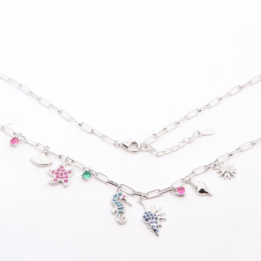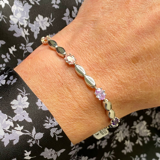 Silver Multi Coloured Quatrefoil Bracelet | 16+3cm