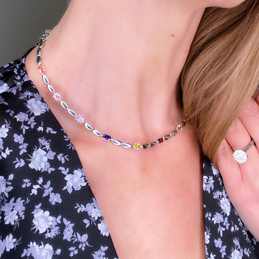 Silver Multicolour 3mm CZ Tennis Bracelet | 16+3cm