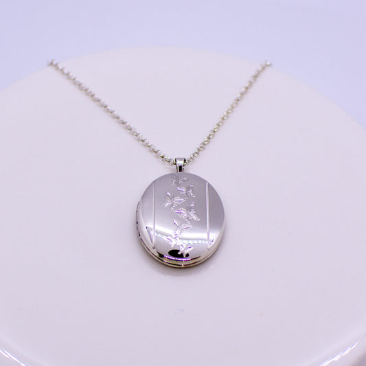 Silver Oval Butterflies Locket and Chain