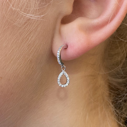 Silver Open Pear CZ Drop Half Hoop Earrings