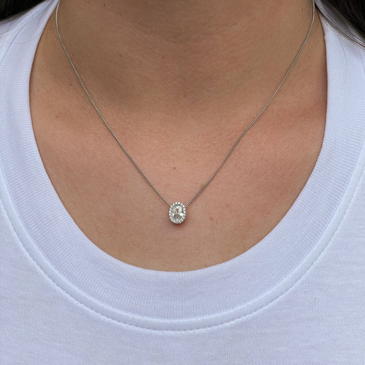 Silver Oval Cut CZ Halo Stud Earrings | 9mm x 7mm