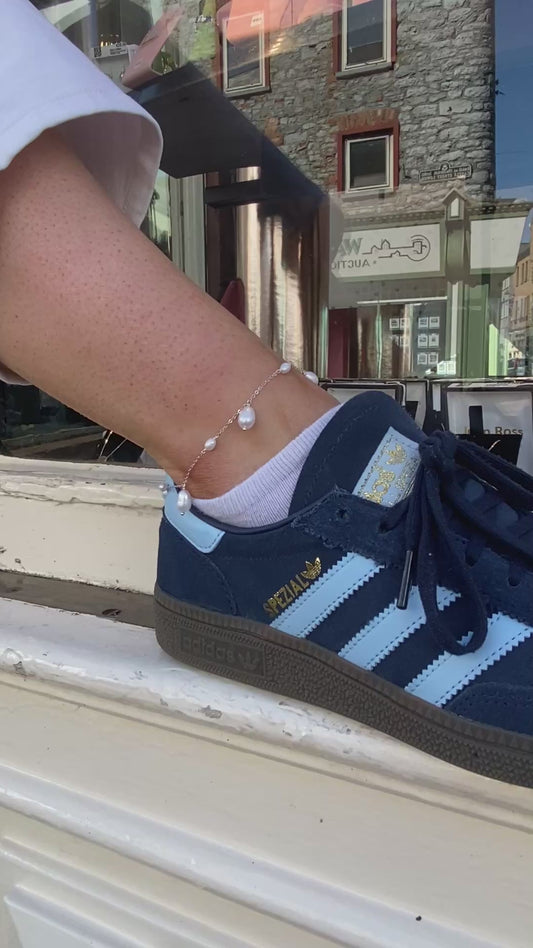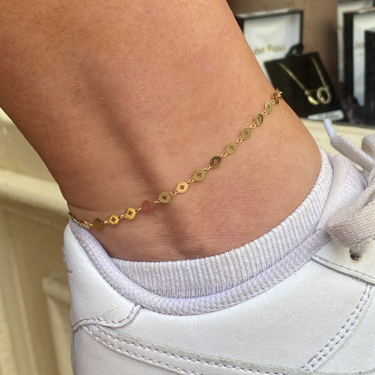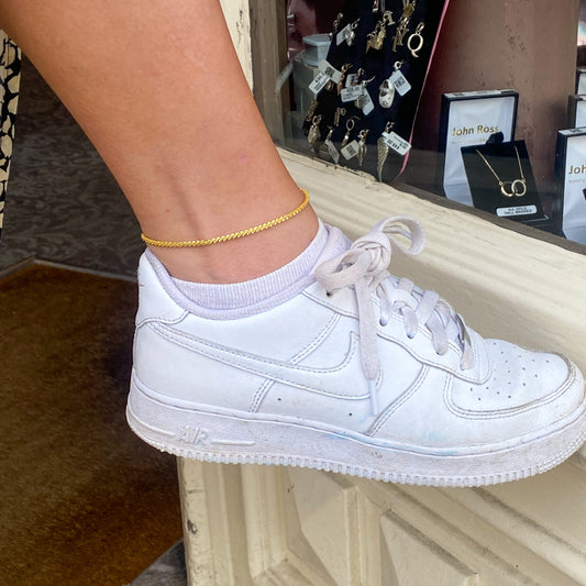Silver Anklet - Delicate Double Beaded | 23-25cm