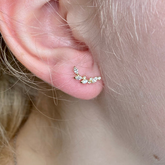 9ct Gold CZ Twig Stud Earrings | Climbers