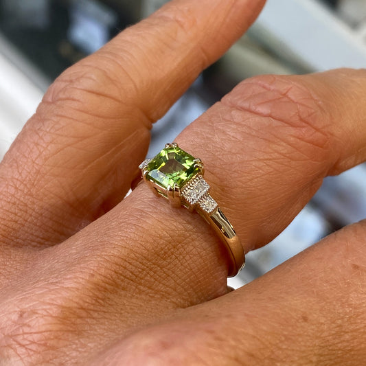 9ct Gold Peridot & Diamond Ring