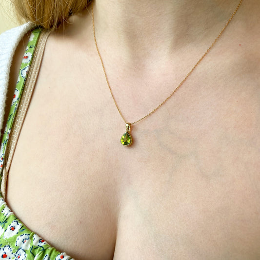 9ct Gold Peridot Pear Necklace