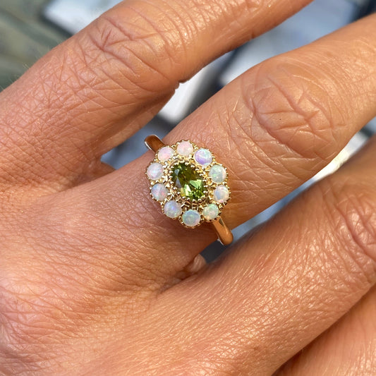 9ct Gold Peridot, Sapphire & Diamond Ring
