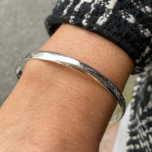 Silver D Shaped Bangle | 5mm
