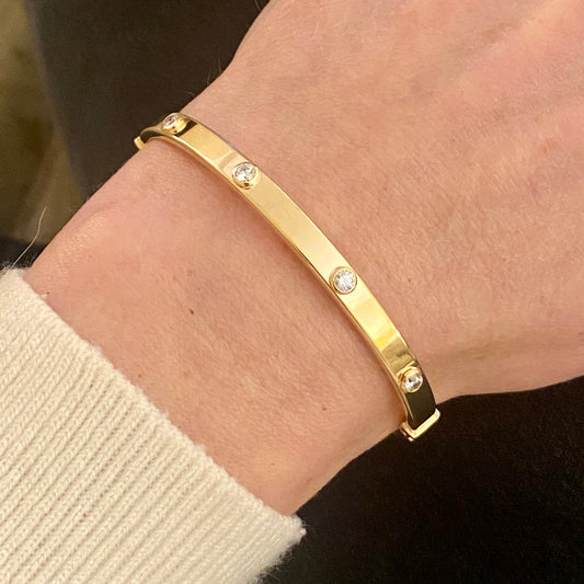 9ct Gold Polished Bangle | Eight CZs