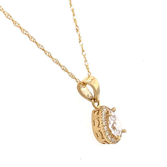 9ct Gold Pear CZ Halo Necklace