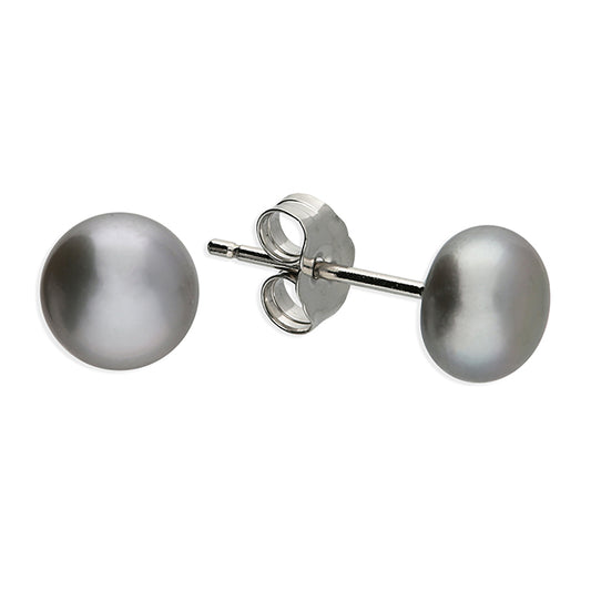 Silver Light Grey Freshwater Pearl 8mm Button Stud Earrings