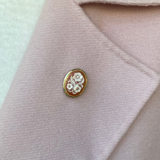 18ct Gold Shell Floral Cameo Brooch/Pendant | Small
