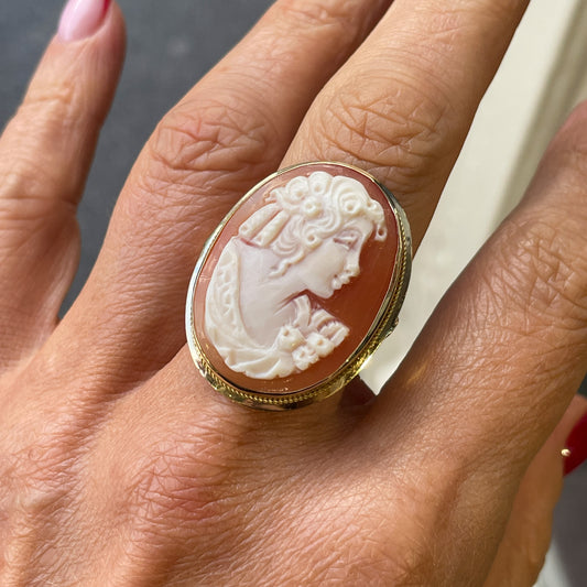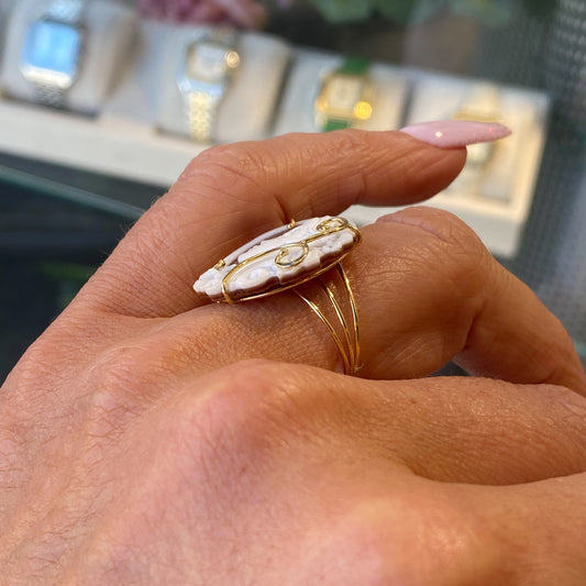 18ct Gold Shell Cameo Ring | 21mm x 16mm