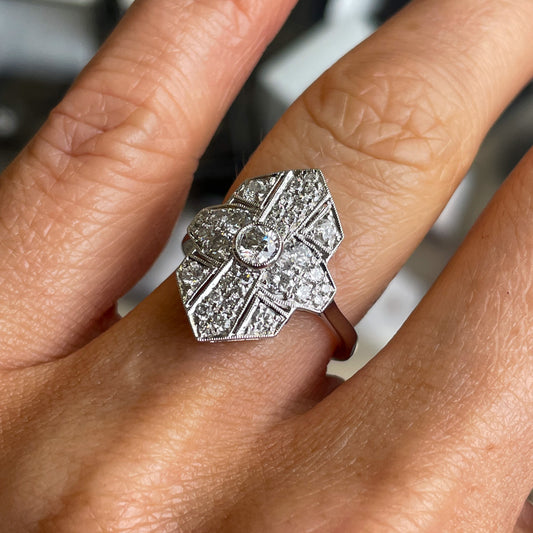 9ct Gold Green Agate & CZ Vintage Style Ring