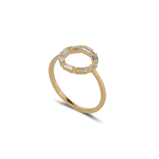 9ct Gold Open Circle Baguette CZ Ring