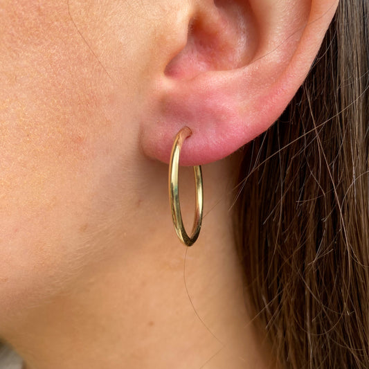 9ct Gold Skinny Tube Hoop Earrings 15mm