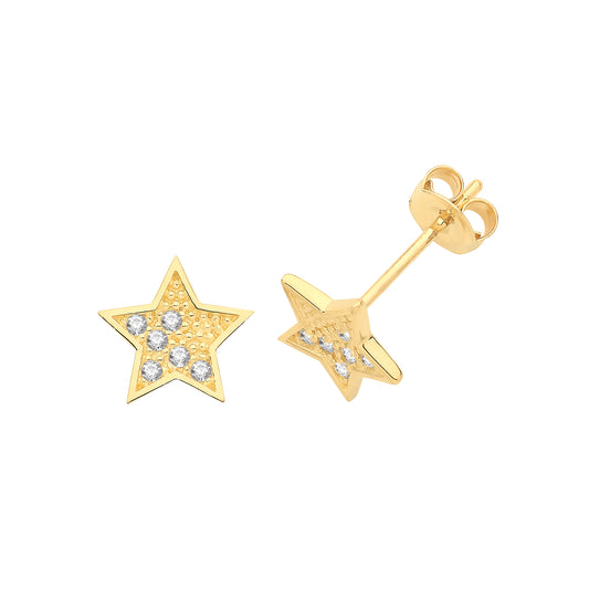Sold out9ct Gold CZ Star Stud Earrings | 7mm