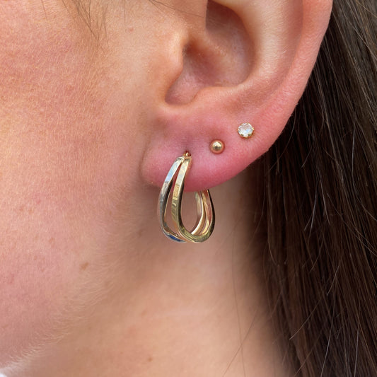 9ct Gold Two Tone Wave Hoop Earrings | Square Tube