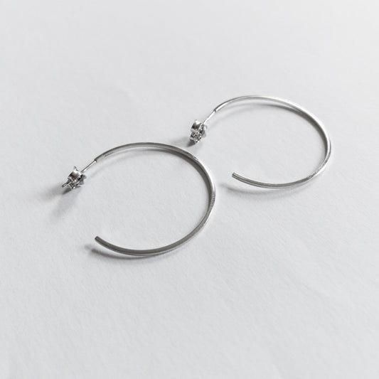 9ct White Gold Extra Skinny Hoop Earrings | 32mm