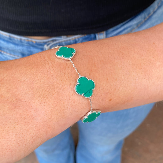 Silver Turquoise Quatrefoil Bracelet