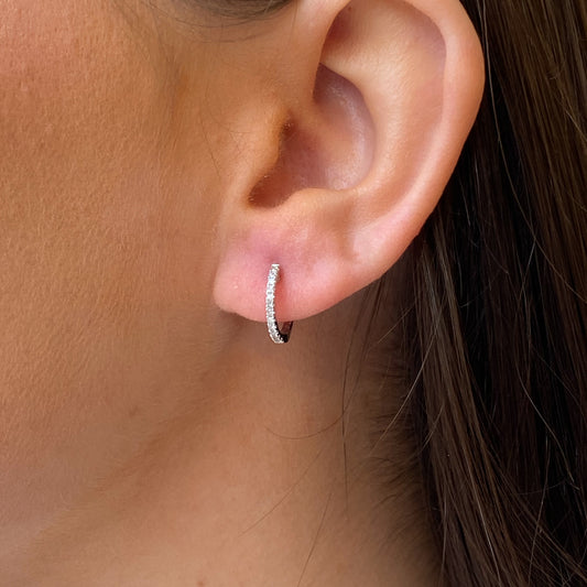 14ct White Gold Classic Diamond Set Skinny Hoop Earrings | 0.17ct