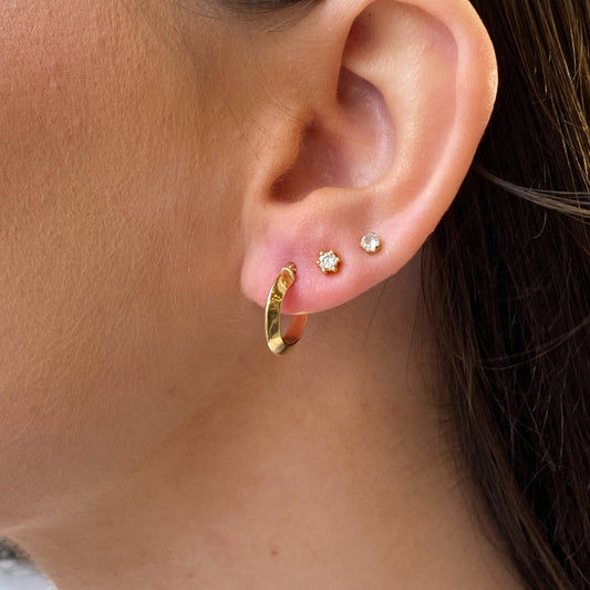 18ct Gold Classic 2mm Square Tube Hoop Earrings | 14mm