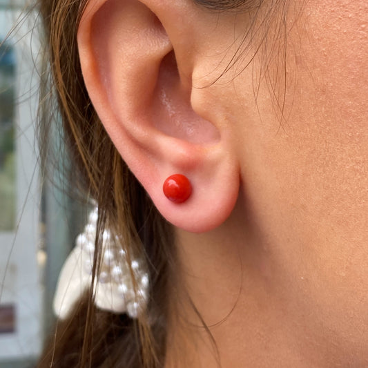 18ct Gold Red Coral Ball Stud Earrings | 6mm