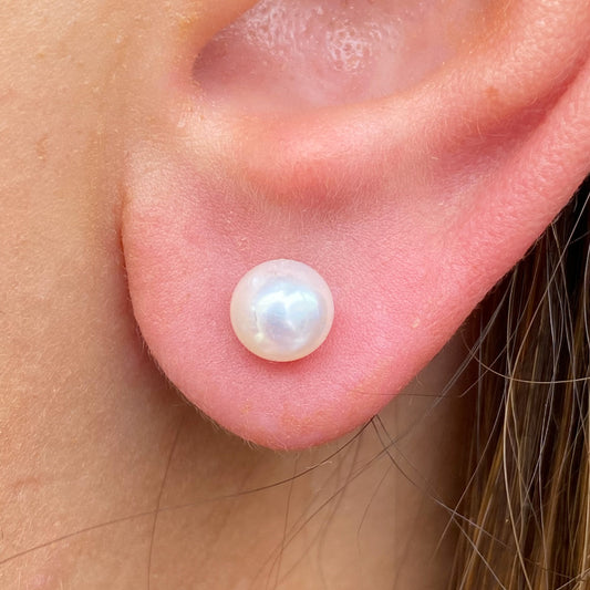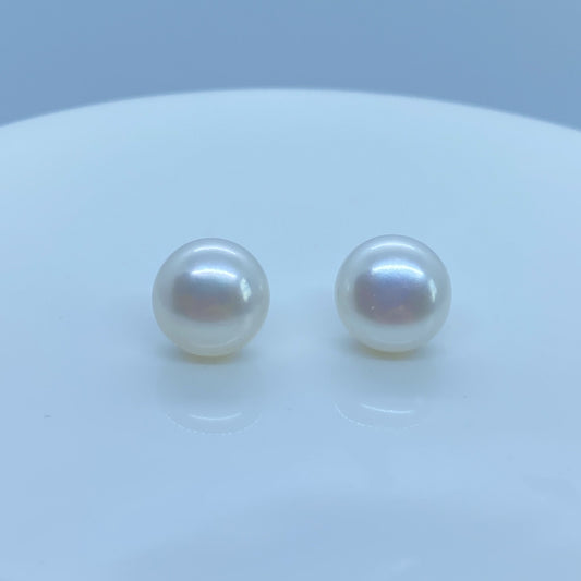 18ct White Gold 10mm Pearl Button Stud Earrings